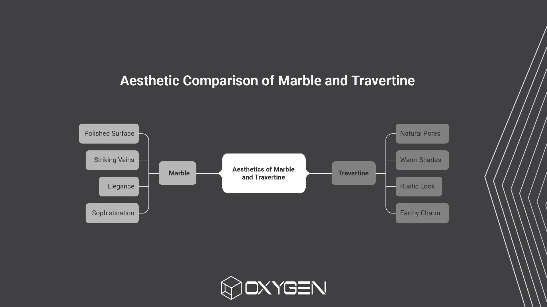 When comparing Marble vs. travertine in terms of aesthetics, each stone offers a distinct visual appeal. Polished Marble is renowned for its luxurious, polished surface with striking veins that create a sense of elegance and sophistication.